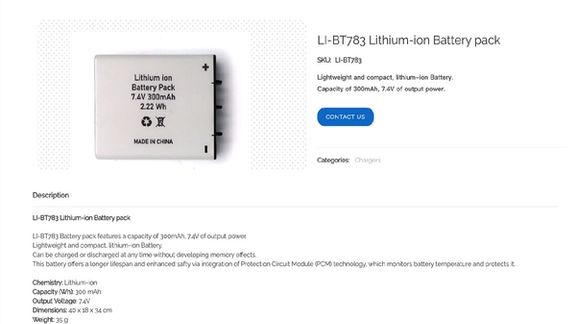 وكان جزء من الموقع المخصص للبطارية "LI-BT783" أشار إلى الأداء الفائق للبطارية. وأوضح أن هذه البطارية تدوم لمدة 85 يوماً وتُشحن عبر كابل USB، بعكس البطاريات ذات الاستخدام الواحد التي كانت تغذي "البيجرات" القديمة.
