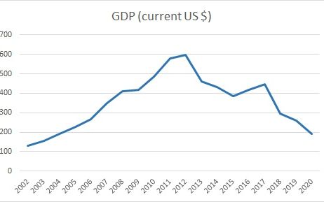 Calculated based on the free market rate of the US dollar in Tehran, the size of Iran’s economy in 2020 was the same as it was in 2004. After a substantial growth around 2010 due to very high oil prices, the economy began to decline from 2012 when international sanctions left their deep mark on Iran revenues.