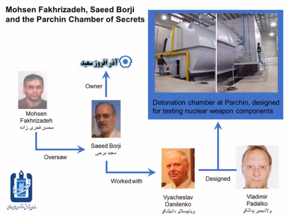 Borji, who has a PhD in chemical engineering from Malek Ashtar University of Technology, has previously worked in Parchin military complex with Russian-born former Soviet scientist Vyacheslav Danilenko – with an extensive expertise in the development of nuclear detonators – and Vladimir Padalko on projects about explosive chambers for nuclear weapons.