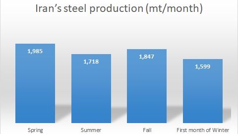 According to Iran Steel Manufacturers Association’s statistics, the country’s steel production has declined in last summer due to electricity deficit and plunged in January 2024 due to severe gas deficit.