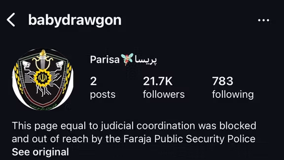 On March 2, the same day news emerged of her conditional release, Seyfizade’s Instagram page was blocked. The platform displayed a message indicating that the action had been taken by Iran’s cyber police.