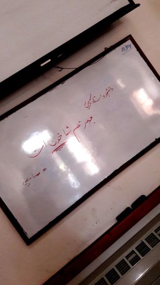 عکسی هم به ایران اینترنشنال رسیده که نشان میدهد روی یک تابلو کلاس درس دانشگاه هنر اصفهان نوشته شده است: «دانشجو و استاد گرامی، جوهر قلم شما خون است.»