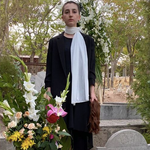 عکس دختر مینو مجیدی بر سر مزار او در حالی که موهای خود را بریده بود در شبکههای اجتماعی بسیار مورد توجه قرار گرفت.