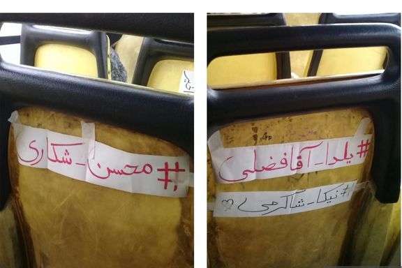 نصب نام جانباختگان اعتراضات روی صندلیهای اتوبوس در قزوین