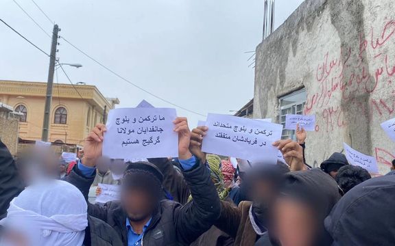 مردم معترض در تجمع اعتراضی خود همچنین شعار «کرد و بلوچ و آذری؛ برادری برابری» سر دادند.