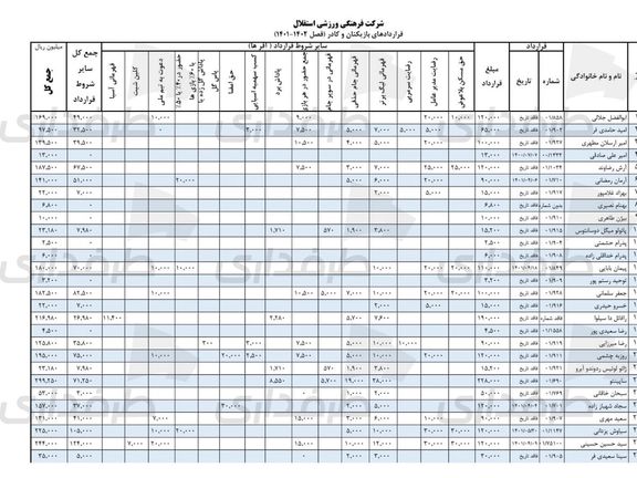سایت طرفداری، قراردادهای فصل گذشته استقلال را منتشر کرده است. در این جدول، نکات عجیبی وجود دارد، بازیکنانی مثل سیاوش یزدانی، ابوالفضل جلالی، آرش رضاوند و جعفر سلمانی که کمترین دقایق بازی را داشتند، جمعا ۱۰۰ میلیارد گرفتهاند. حسین حسینی هم از بیرانوند گرانتر بوده است.