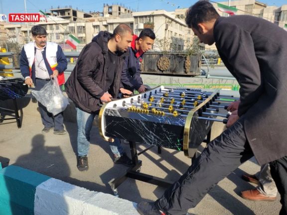 همچنین خبرگزاری تسنیم وابسته به سپاه پاسداران عکسی از راهپیمایی حکومتی ۲۲ بهمن منتشر کرده که در آن دیده میشود حکومت برای شرکتکنندگان در راهپیمایی میز بازی فوتبال دستی فراهم کرده است.