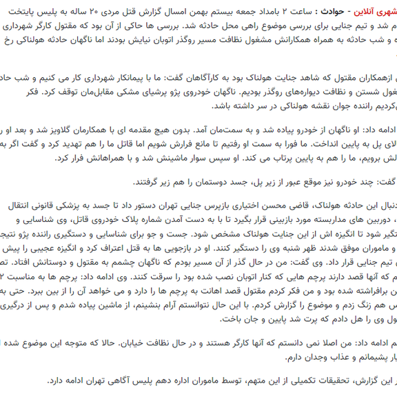 وبسایت همشهری آنلاین، وابسته به شهرداری تهران، گزارشی از اظهارات قاتل منتشر کرد، اما پس از مدتی اظهارات قاتل از این گزارش حذف شد.