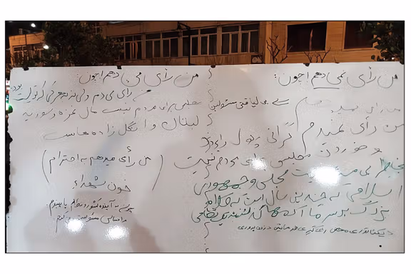 کمپین فعالن بلوچ، تصویری از دستنوشته یک زن بلوچ را منتشر کرده که در آن نوشته شده «پدرم را بیگناه اعدام کردید و نه من و نه خانوادهام اعدام پدرم را با رای دادن تایید نخواهیم کرد.» این شهروند بلوچ در نوشته خود از هشتگ «نه به انتخابات فرمایشی» استفاده کرده است.
