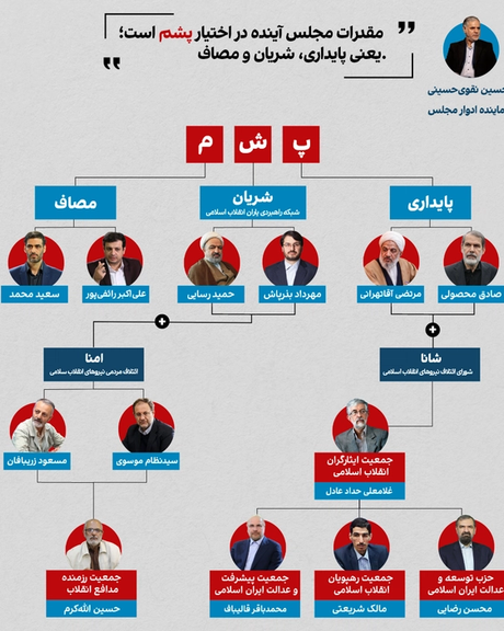در روزهای پایانی فروردینماه ۱۴۰۳، حسین نقویحسینی، نماینده ادوار مجلس، درباره ترکیب مجلس دوازدهم گفت: «از نگاه بنده مقدرات مجلس آینده در اختیار پشم است یعنی پایداری، شریان و مصاف که این اصطلاح، توضیح مختصر و مفید این سه کلمه است.»
