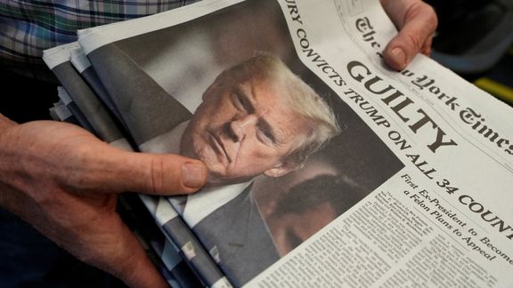 هیات منصفه دادگاه کیفری نیویورک، ترامپ را به اتهام جعل سوابق تجاری برای سرپوش گذاشتن بر پرداخت حقالسکوت به استورمی دنیلز، بازیگر فیلمهای پورن، در ۳۴ فقره مجرم شناخت.