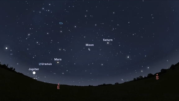 در این شبها اورانوس، دیگر سیاره منظومه شمسی نیز در این خط قرار دارد اما دیدن آن با چشم غیرمسلح امکانپذیر نیست.