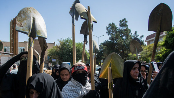 مراسم عزاداری محرم توسط زنان روستای روشنآباد بابل با در دست داشتن «بیل»