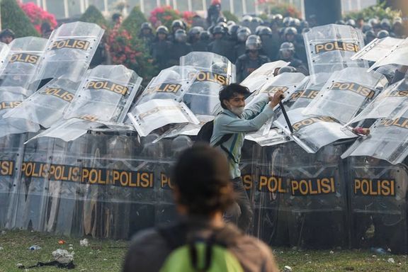 تصاویر منتشر شده از اندونزی در رسانههای اجتماعی، حاکی از آن است که معترضان بخشی از دروازههای پارلمان را شکستند و به آتش کشیدند و نیروهای امنیتی با گاز اشکآور و آبپاش به سوی آنان حمله کردند.