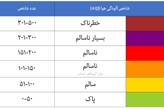 بر اساس این شاخص افراد مبتلا به بیماری قلبی یا ریوی، سالمندان و کودکان باید فعالیتهای طولانی یا سنگین خارج از منزل را کاهش دهند.
