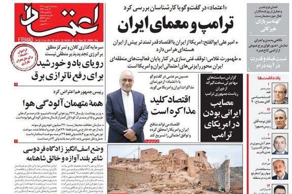 روزنامه اعتماد که متعلق به الیاس حضرتی، رییس شورای اطلاعرسانی دولت است، در چندین مطلب جداگانه، تبعات بازگشت ترامپ به قدرت را بررسی کرده است.