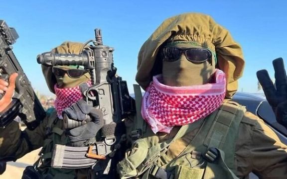 شماری از شبهنظامیان حماس با یونیفورم و جلیقههای نظامی ارتش اسرائیل و سلاحهایی که در روز هفتم اکتبر از اسرائیل دزدیده شدهاند، به محل آزادی گروگانها آمدند.