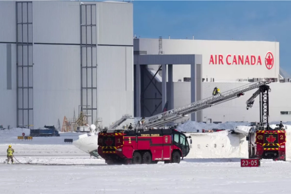 دوشنبه در شرایطی که پس از یک طوفان برفی، باد شدیدی در تورنتو میوزید، یک پرواز خطوط هوایی دلتا هنگام فرود در فرودگاه پیرسون این شهر وارونه شد و ۱۵ نفر از ۸۰ سرنشین آن مجروح شدند. مقامات اعلام کردند حال سه تن از این مجروحان، از جمله یک کودک، وخیم است.