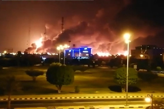 ویدیویی از آسوشیتدپرس، لحظه سقوط یک بمب در صنعا را نشان میدهد که دود عظیمی در آسمان شب به پا میکند.