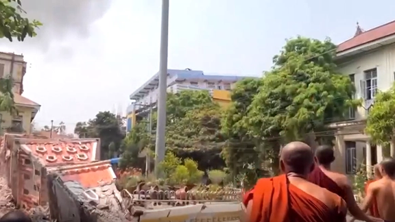 ویدیویی منتشرشده از ماندالای، راهبان بودایی را نشان میدهد که از صومعه چندطبقه «ما سوه یانه» فیلمبرداری میکردند، قبل از آنکه ساختمان ناگهان فرو بریزد.
