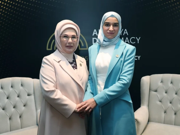 همزمان با «اجلاس دیپلماسی آنتالیا»، امینه اردوغان، همسر رییسجمهوری ترکیه با انتشار عکسهای دیدار خود با لطیفه الدروبی، همسر رییسجمهوری دولت موقت سوریه در شبکه ایکس گفت که این دو در دیدار خود درباره پروژههای مشترک، از جمله طرحهایی در ارتباط با زنان و کودکان در سوریه گفتوگو کردند.