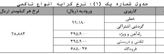 نرخ ورودی برای تاکسیهای «راهآهن و ویژه» و «تاکسی تلفنی» ۴۹ هزار و ۵۹۰ تومان و برای تاکسیهای فرودگاه، ۶۸ هزار و ۵۰۲ تومان خواهد بود.