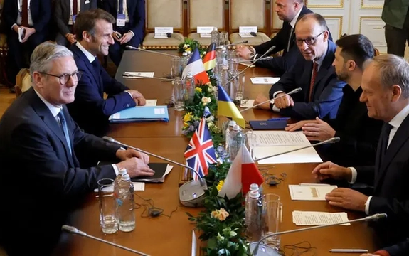 شنبه ۲۰ اردیبهشتماه، کییر استارمر، نخستوزیر بریتانیا، امانوئل مکرون، رییسجمهوری فرانسه، فریدریش مرتس، صدراعظم آلمان و دونالد توسک، نخستوزیر لهستان، وارد کییف شدند و ضمن دیدار با زلنسکی، حمایت خود را از اوکراین اعلام کردند.