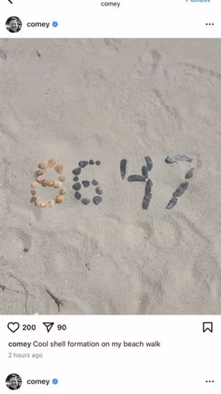 کومی، که در سال ۲۰۱۷ از سوی ترامپ از سمتش برکنار شد، تصویری از عدد «۸۶۴۷» را که با صدفهای دریایی روی ساحل شکل داده شده بود در اینستاگرام منتشر کرده و نوشته بود: «چیدمان جالب صدفها در پیادهرو ساحلیام.»