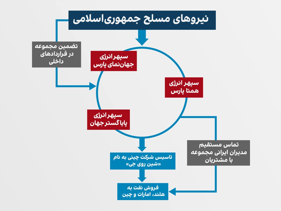 اما اسنادی که به دست ایراناینترنشنال رسیده نشان میدهد آنها نه تنها برای نیروهای مسلح و سپاه پاسداران کار میکنند، بلکه فعالیتهایشان در فروش نفت تحت حمایت کامل نیروهای امنیتی قرار دارد.