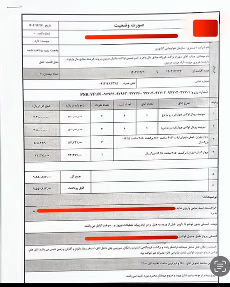 طبق سند، سفر مورد نظر در بازه زمانی ۲۴ تا ۳۰ اسفند ۱۴۰۳ انجام شده است.