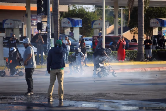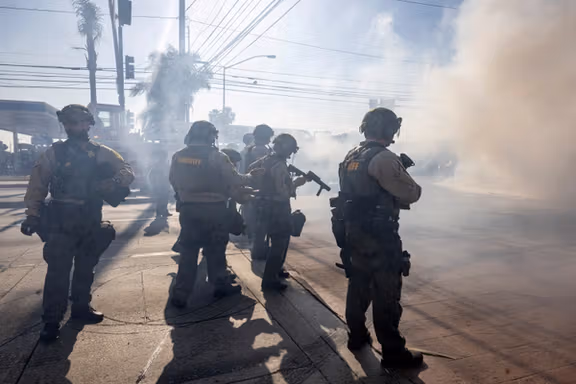 در منطقه پارامونت در جنوب شرق لسآنجلس، حدود ۱۰۰ معترض با پرچم مکزیک و ماسکهای تنفسی با ماموران فدرال روبهرو شدند.