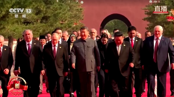 در حاشیه رژه نظامی بیسابقه چین در میدان تیانآنمن، تصاویر منتشرشده نشان میدهد مسعود پزشکیان، رییسجمهوری اسلامی ایران، به همراه دخترش در ردیف سوم پشت سر شی جینپینگ، ولادیمیر پوتین، کیم جونگاون و الکساندر لوکاشنکو رهبران چین، روسیه، کره شمالی و بلاروس در حال حرکت است. جایگاه او بهوضوح در حاشیه این صف اصلی قرار دارد.