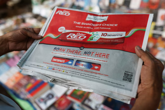 خبرگزاری رویترز شنبه ۱۵ شهریور خبر داد شرکت هندی «دابور» (DABU.NS)، رقیب شرکت آمریکایی خدمات مراقبت شخصی «کولگیت ـ پامولیو»، خمیر دندان خود را به آزمونی از ملیگرایی بدل کرده و از مصرفکنندگان میخواهد برندهای آمریکایی را کنار بگذارند. اقدامی که در بحبوحه تشدید تبلیغ کالاهای بومی و بدتر شدن روابط تجاری با ایالات متحده انجام شده است.