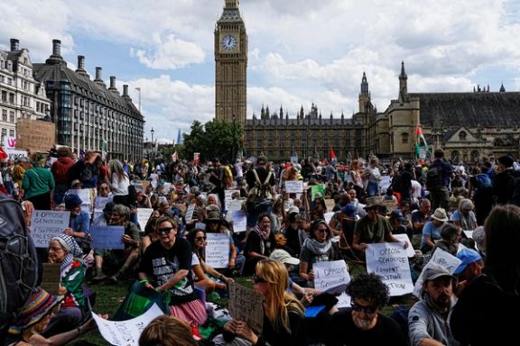 در تظاهرات ۱۵ شهریور در نزدیکی پارلمان بریتانیا، تجمعکنندگان پلاکاردهایی در دست داشتند که روی آن نوشته شده بود: «من با نسلکشی مخالفم. از اقدام برای فلسطین حمایت میکنم.»